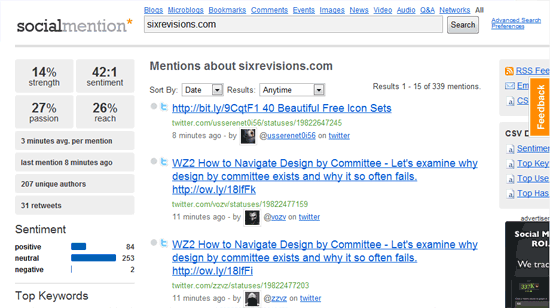 Social Mention is a must for any social media marketer’s tool belt. With this, you can scrape all of the recent and top-performing content on any company, product, or search term. This will bring up a stream that shows you all kinds of analytics.